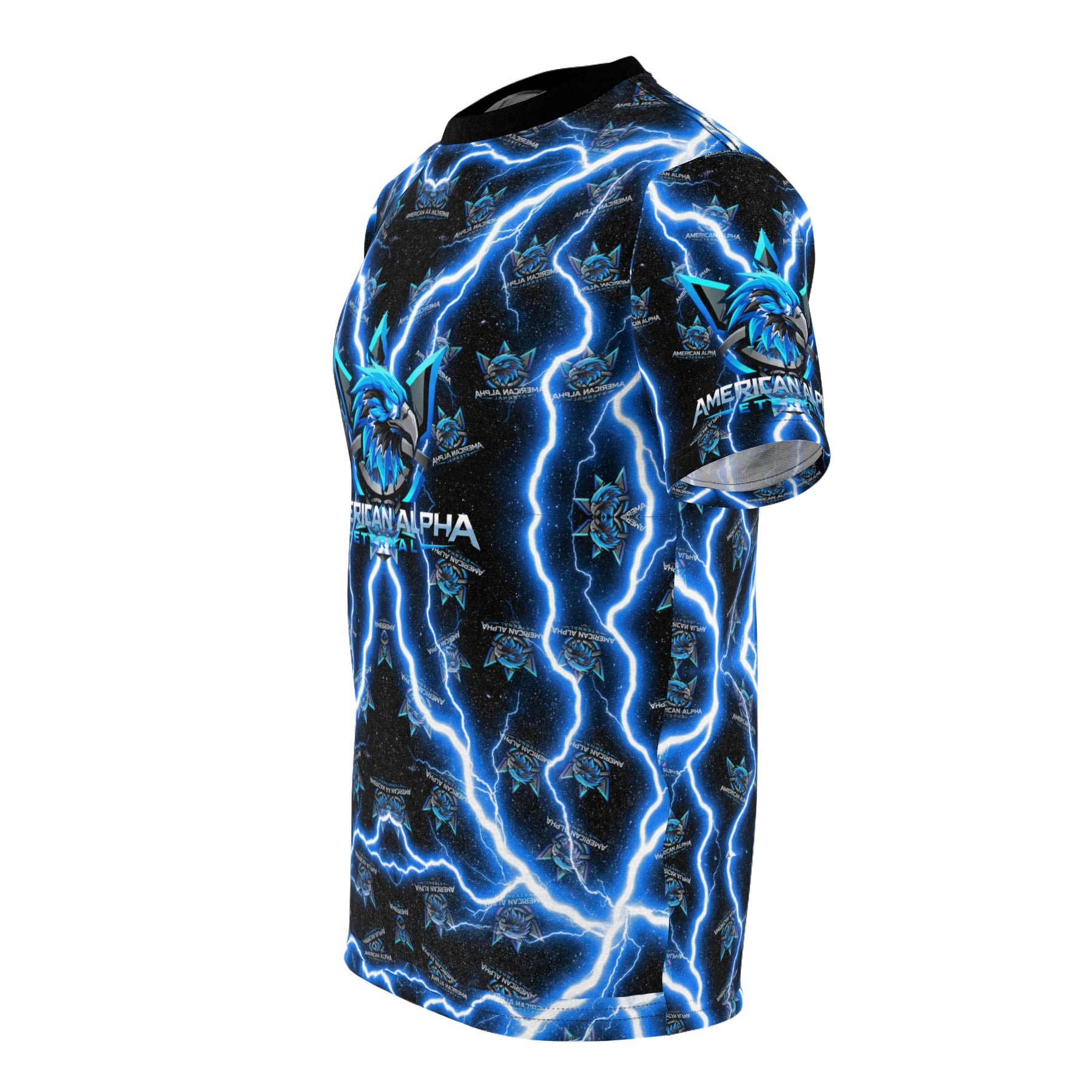 This all-over printed tee channels raw energy: electric blue bolts ripple across a dark, stormy field, framing a bold, snarling eagle emblem at the chest. Lightweight yet durable polyester keeps the colors vivid and the fit consistent, so the graphic stays punchy wash after wash. Wear it when you want to stand out at late-night rides, gaming streams, or rowdy meetups. The ribbed collar and shoulder taping hold shape through movement, while the tagless, regular fit makes it comfortable for long hours. It feels like striking lightning — loud, focused, and impossible to ignore.
