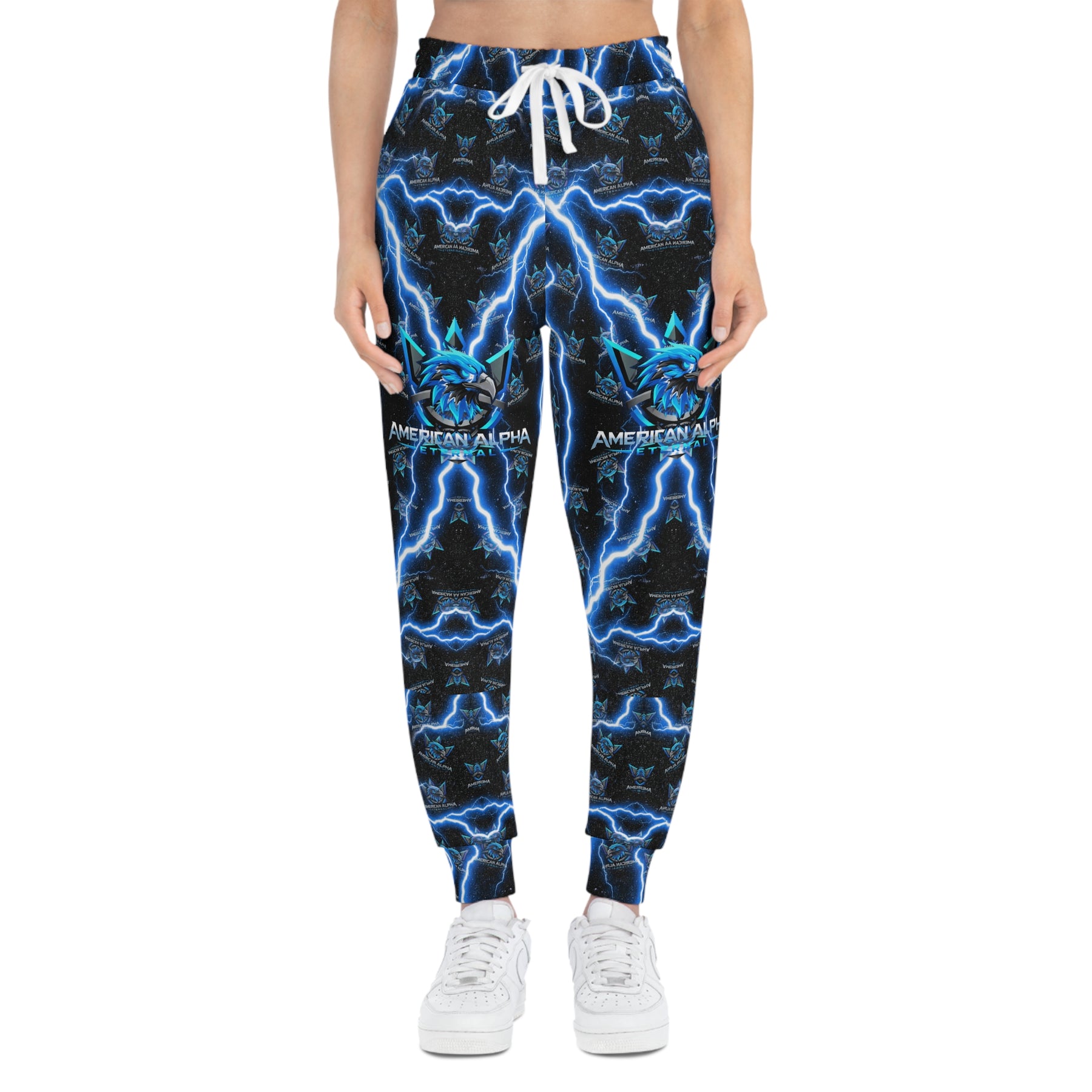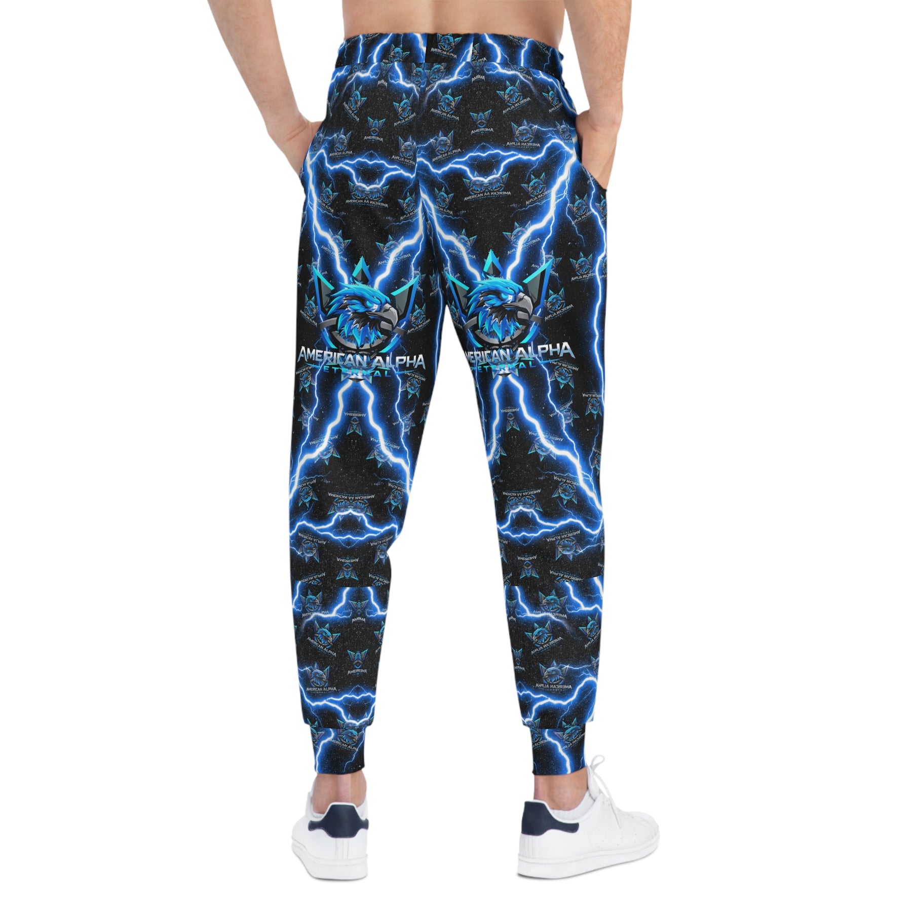 Electric Blue Lightning Joggers – American Alpha Logo Athletic Joggers