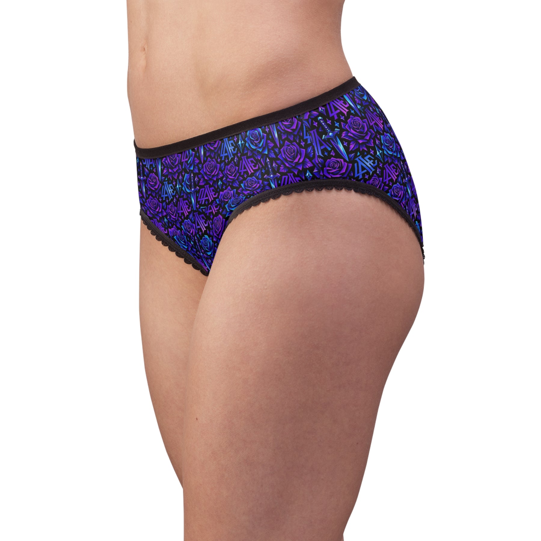 These high-rise briefs bring bold, moody florals into everyday wear. Soft two-sided fleece polyester feels feather-light against skin while the elastic waistband and delicate lace trim hold everything in place without digging. Deep indigo and violet roses blend with geometric accents for a look that reads both romantic and edgy — something to slip into when you want your undergarments to reflect a late-night playlist or a slow, solitary evening. Breathable and colorfast, they stay vivid through washes and move with you from morning coffee to winding down at night.