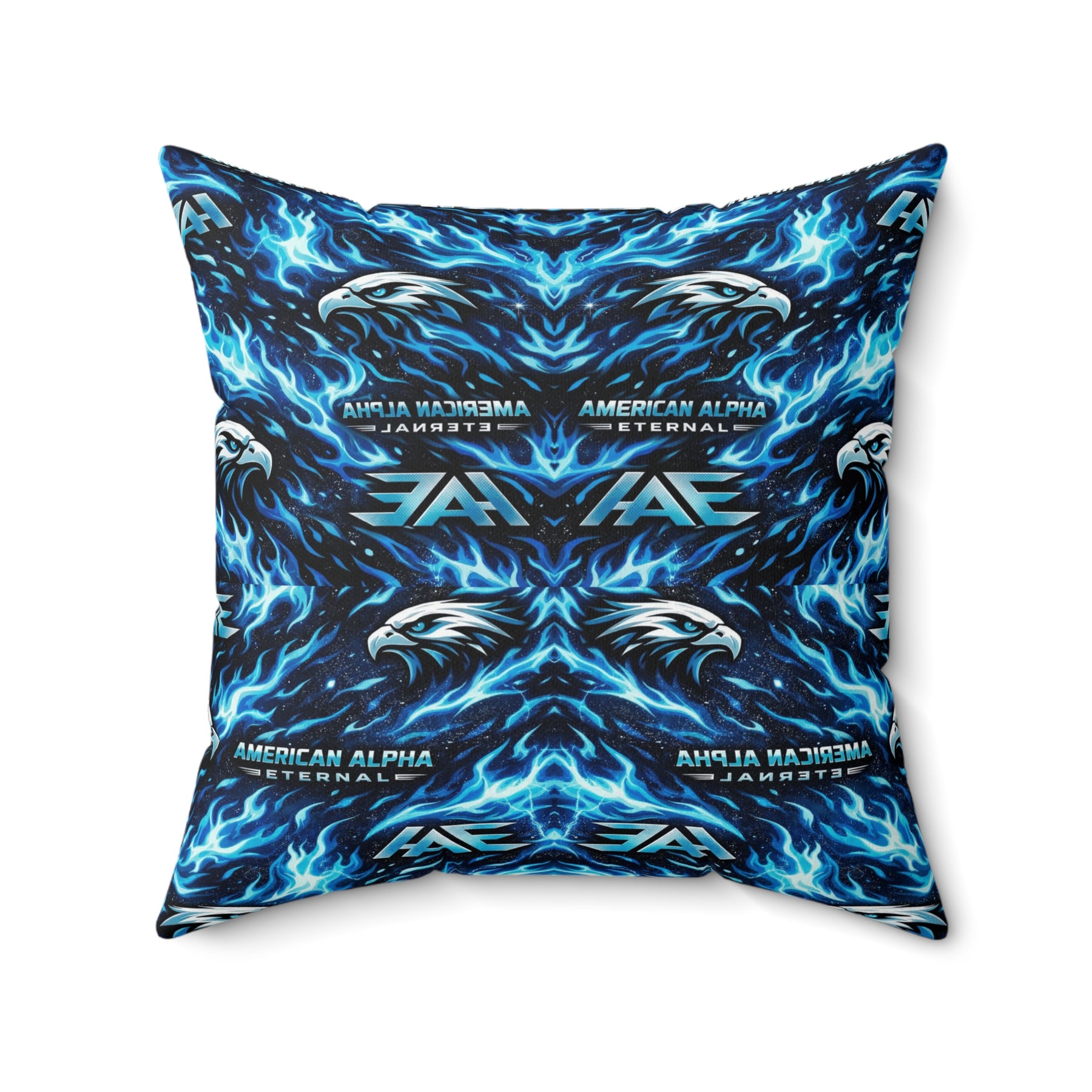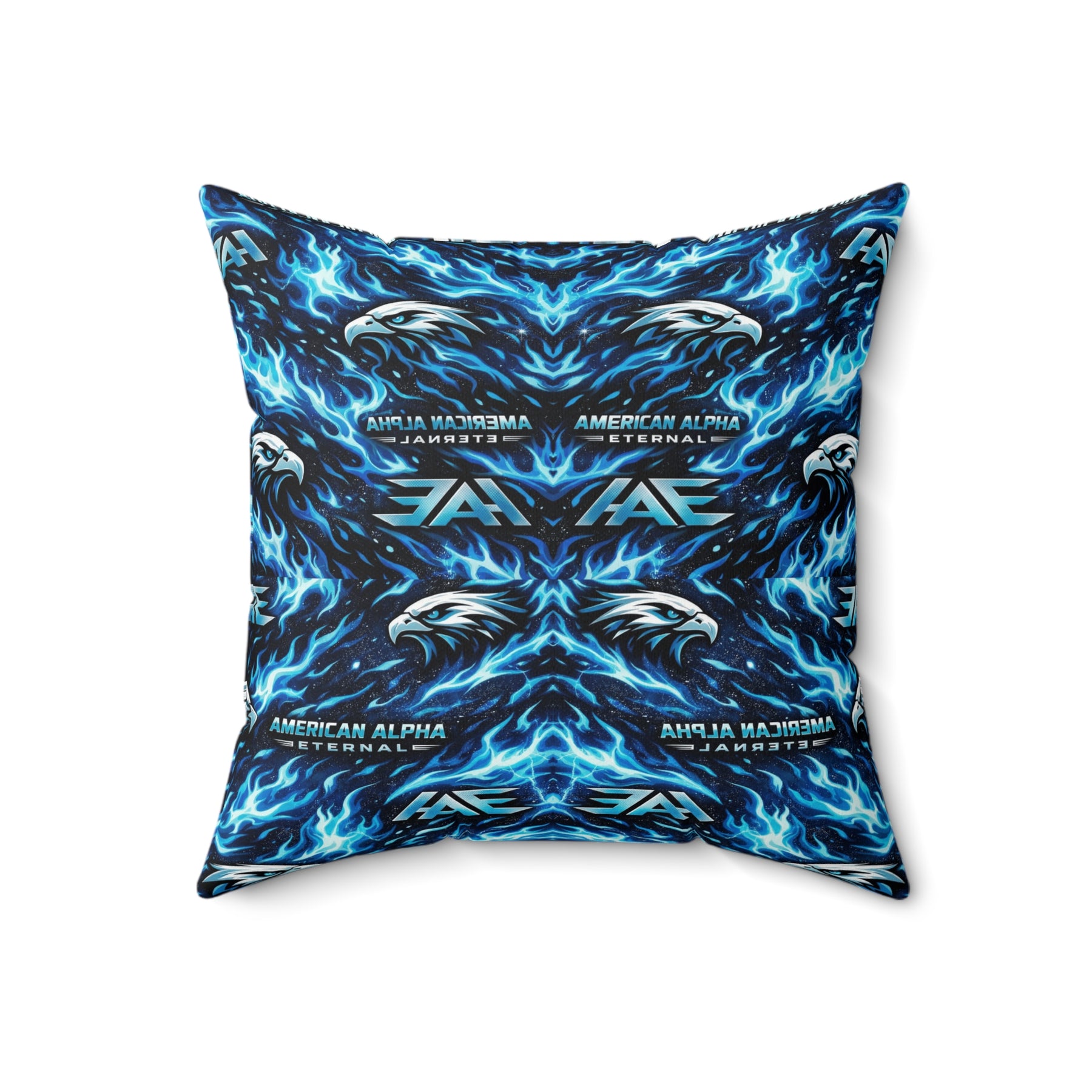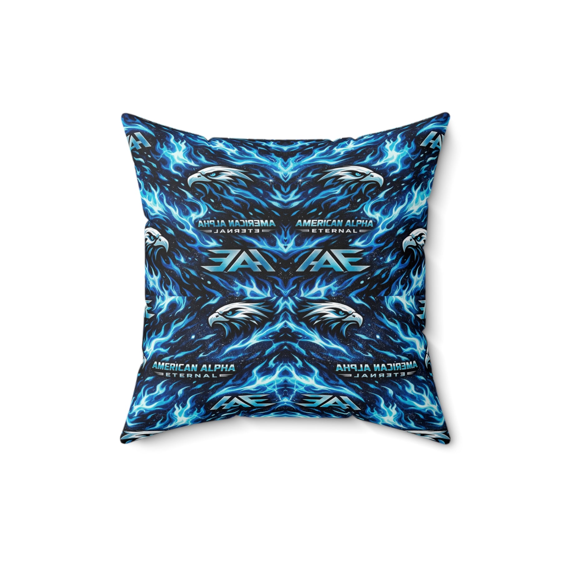 A bold, double-sided throw pillow that brings electric energy to any room. Vivid blues and inky blacks form a mirrored, kaleidoscopic pattern that feels like living light—sharp, dynamic, and a little wild. The cover’s spun polyester holds crisp color and shape without wrinkling, while the recycled polyester insert ships compressed so you can fluff it to full, pillowy volume. Tuck it on a couch or a reading nook to lift the mood and anchor modern, music-driven, or gamer-forward decor with a striking visual pulse.