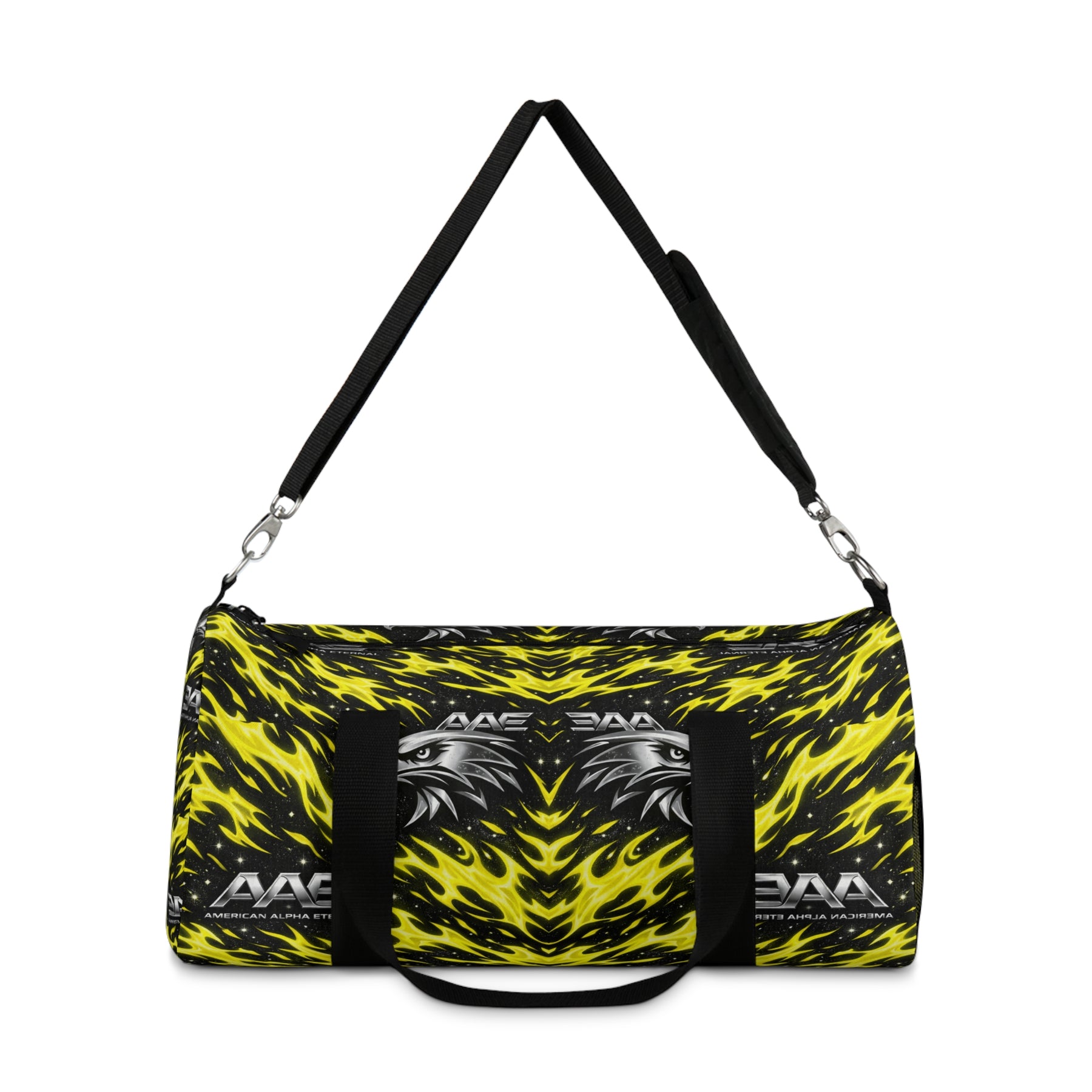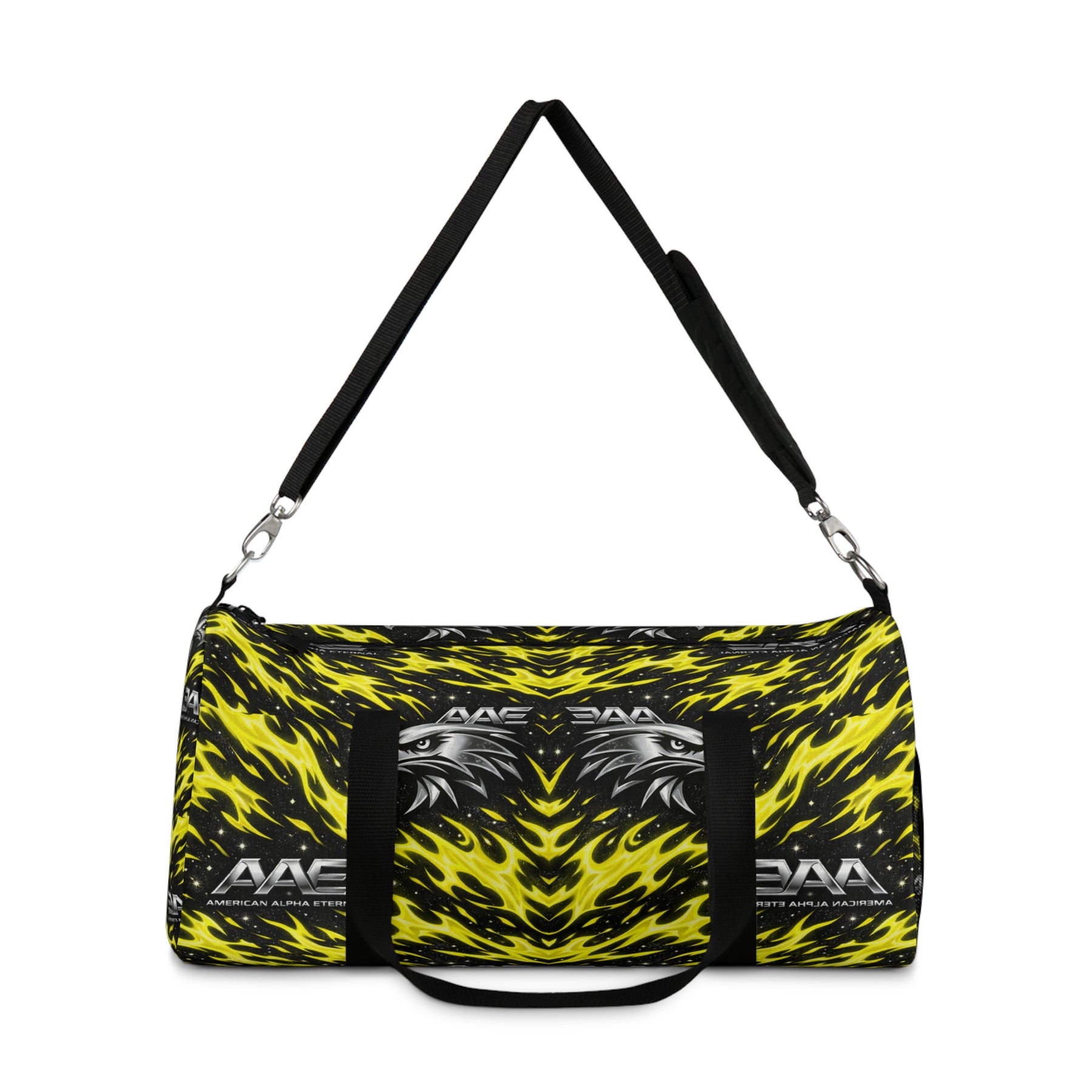 This vibrant duffel brings bold energy to weekend trips, gym sessions, or overnight shows. The black-and-yellow mirrored design reads like electric brushstrokes — loud without being chaotic — and sits on a rugged Oxford canvas that stands up to heavy use. Inside, a secure main compartment and a zippered internal pocket keep gear organized; an integrated name tag adds a personal touch. Carry it by the sturdy top handles or sling it over your shoulder with the adjustable, padded strap. Built with durable hardware and quick-dry polyester, it’s made to travel and to be noticed.